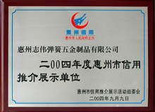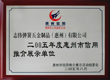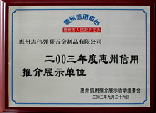2005年度惠州信用推介展示单位 2003年度惠州信用推介展示单位